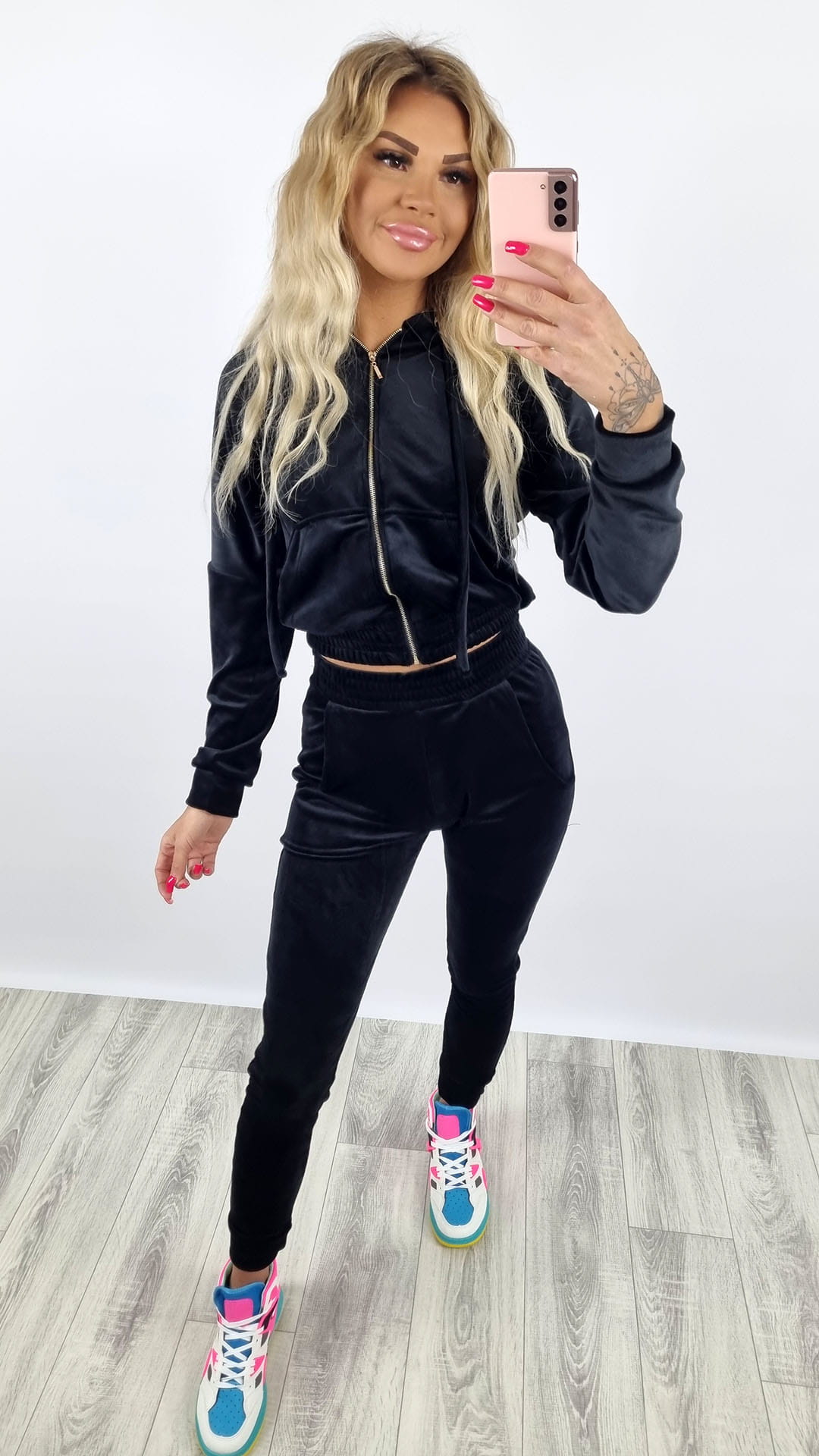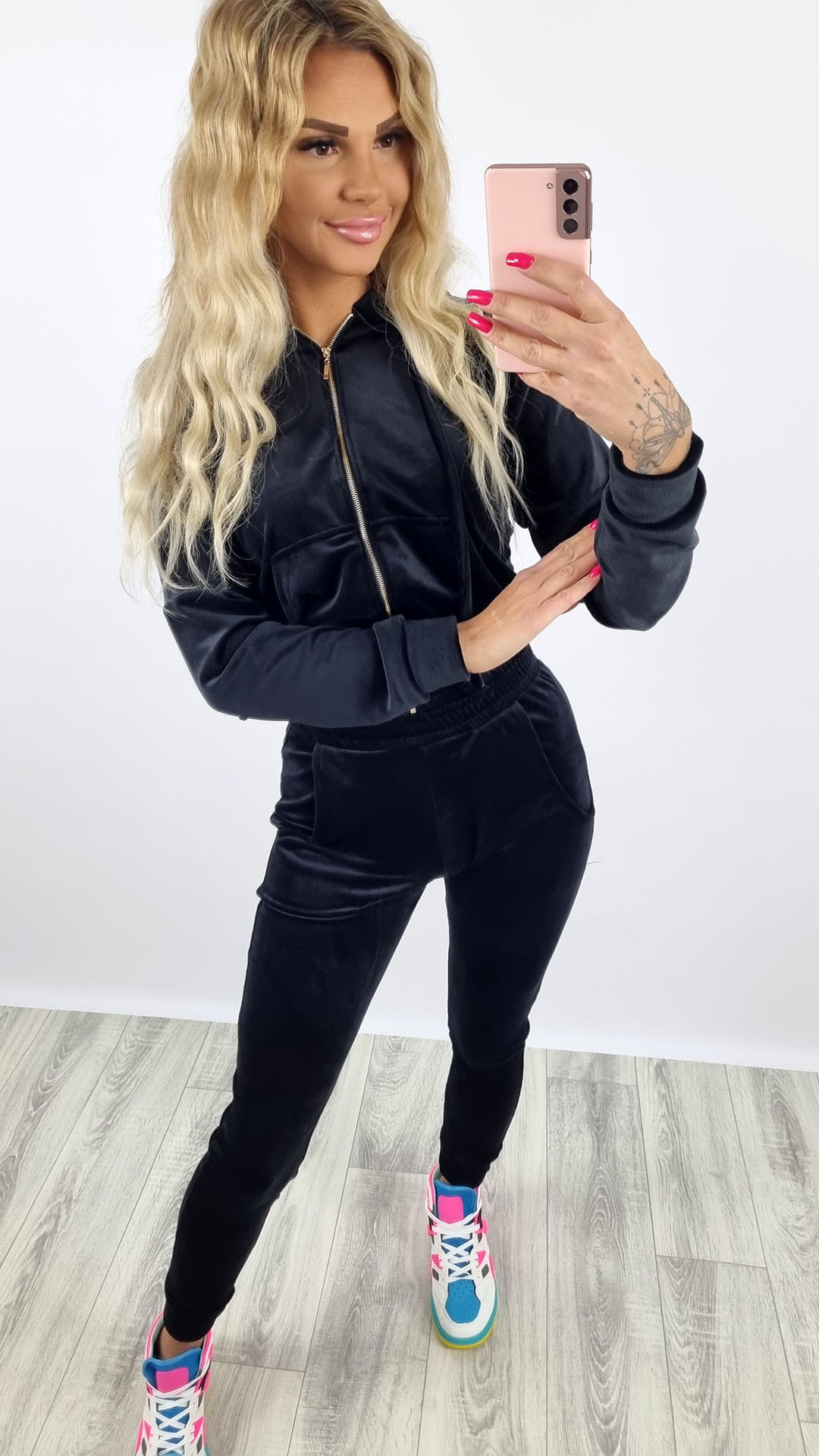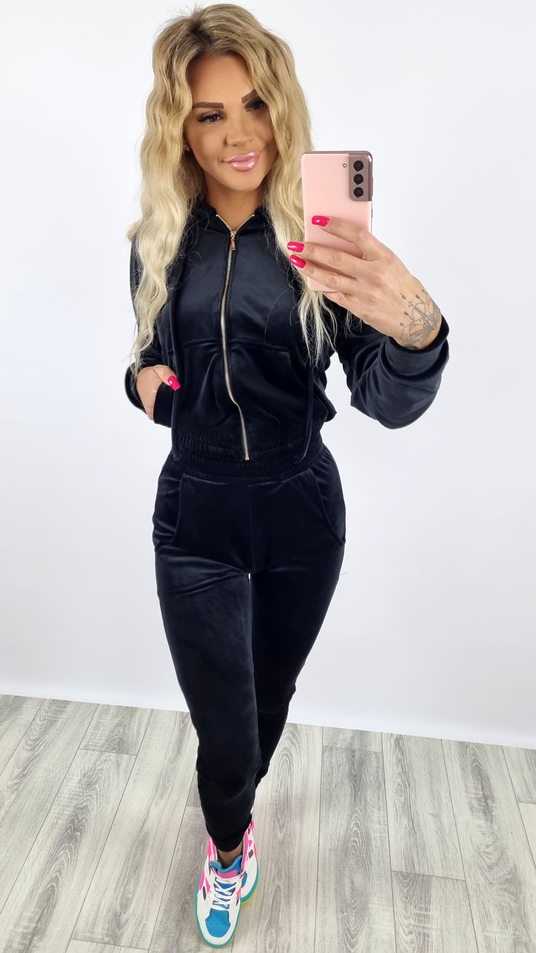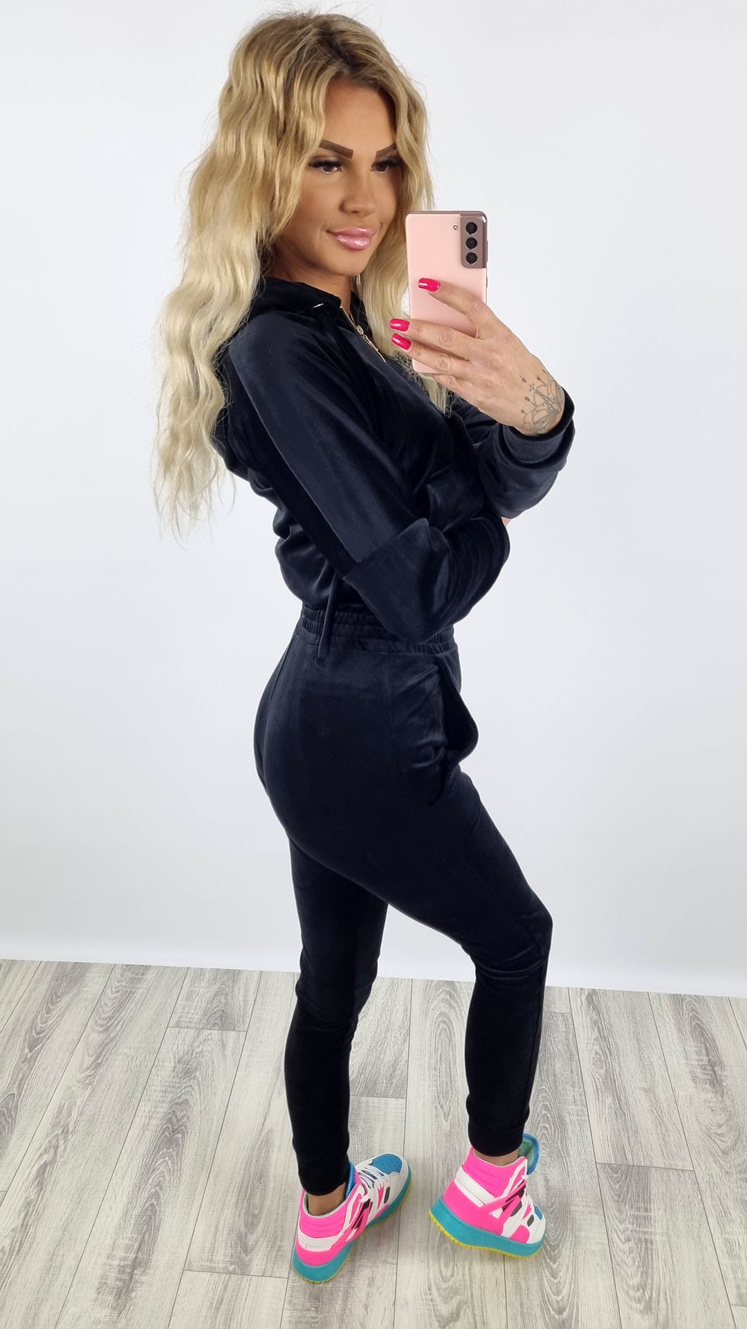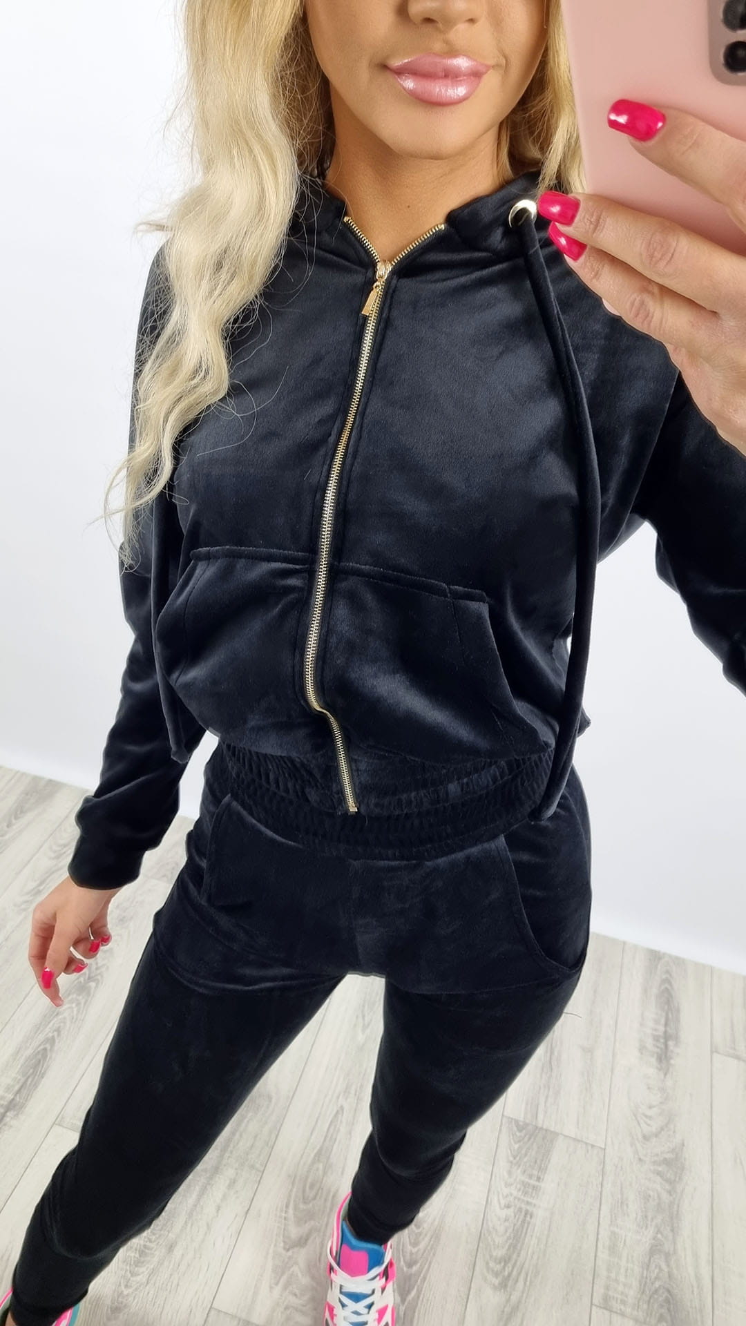 Dres welurowy bluza zamek + spodnie czarny K92