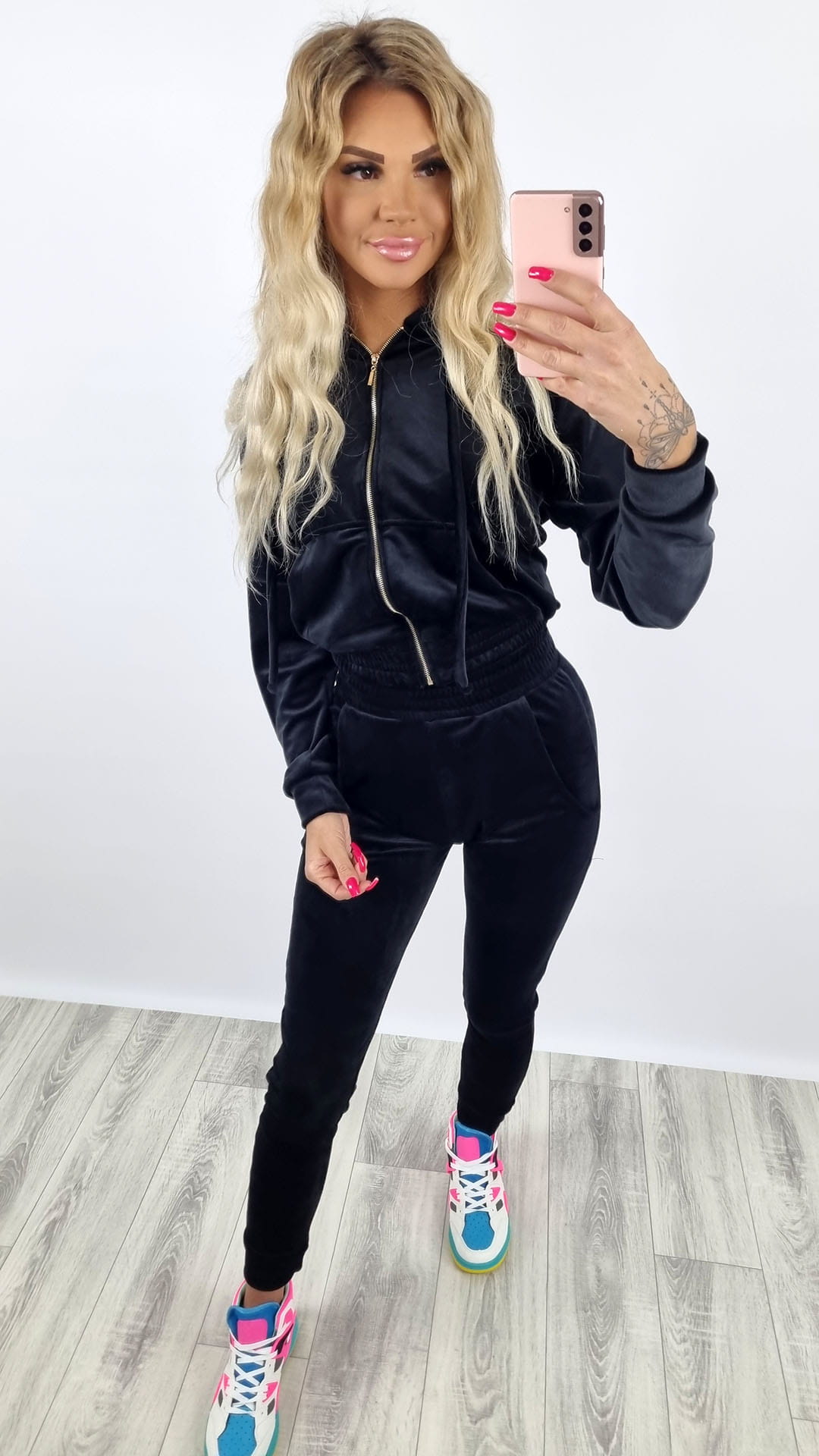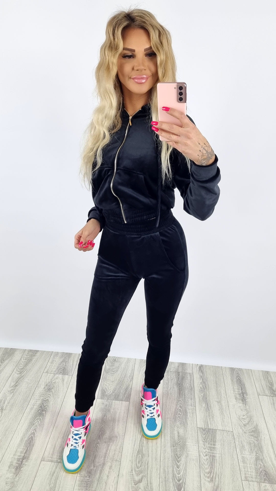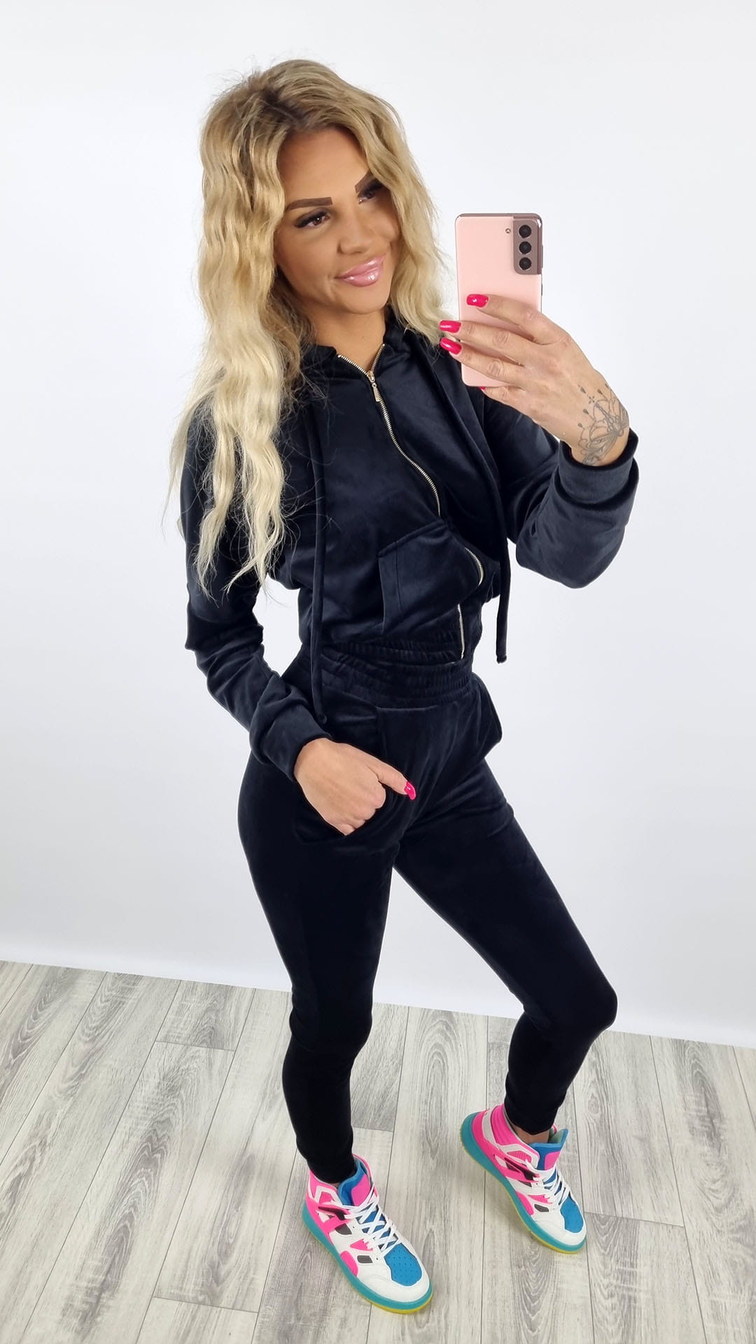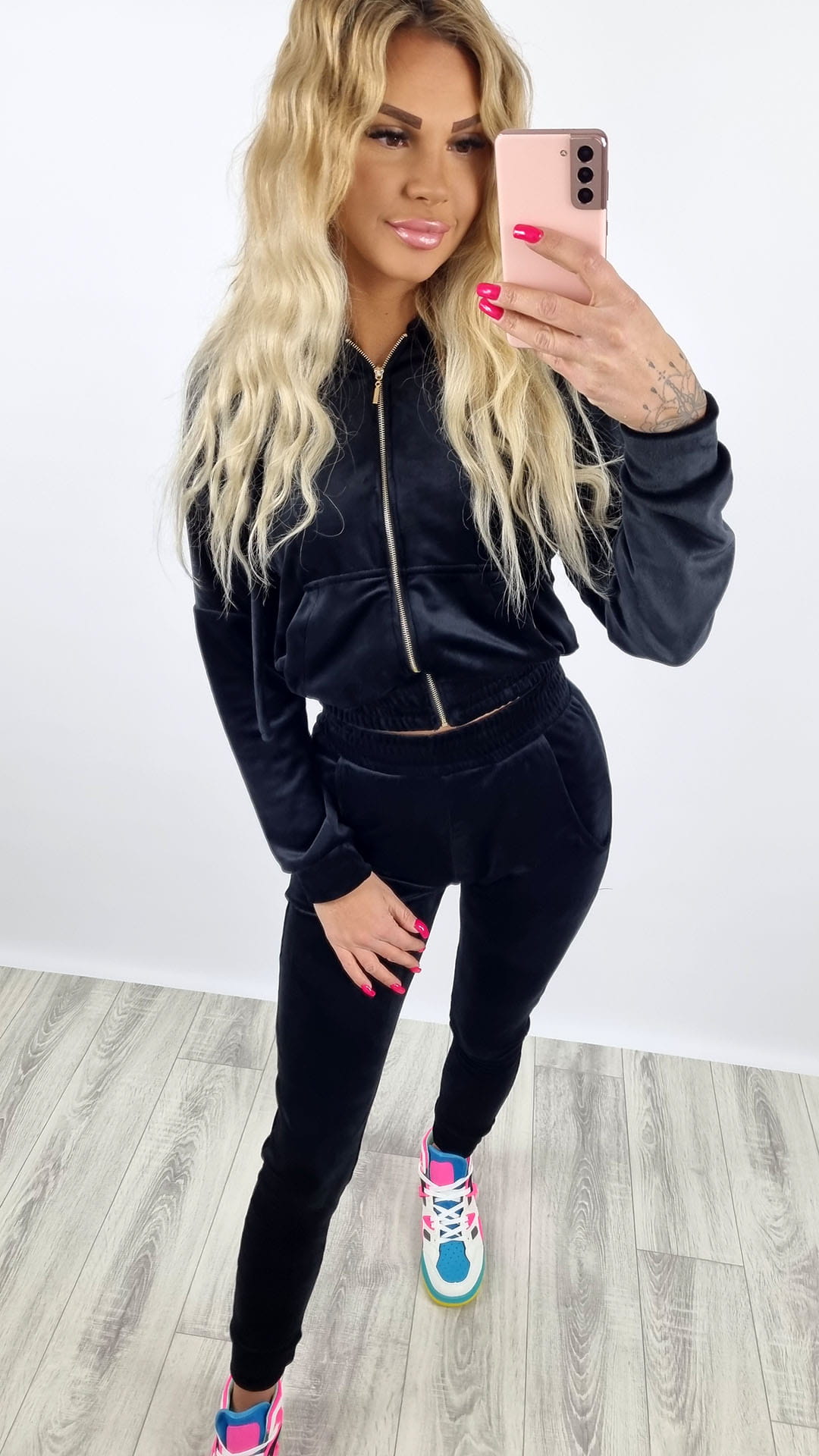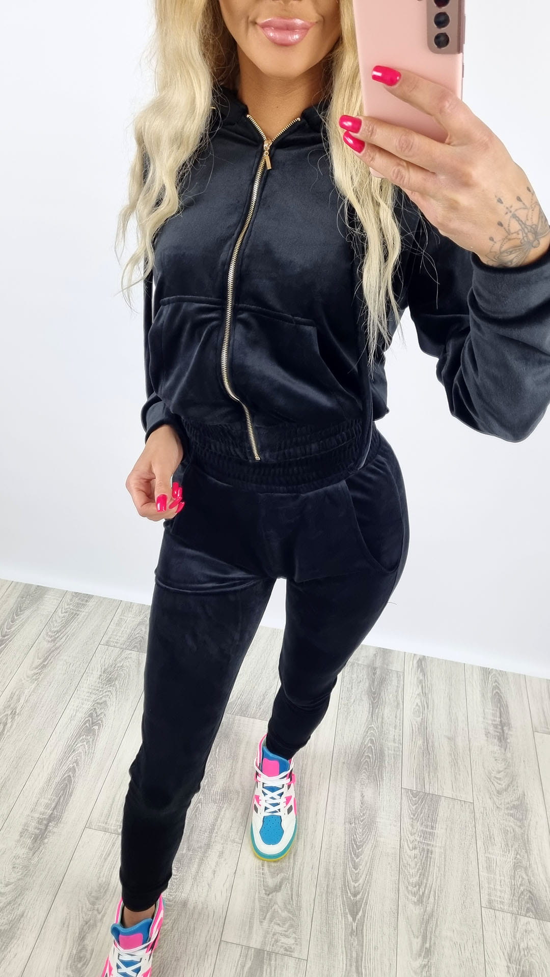 Dres welurowy bluza zamek + spodnie czarny K92