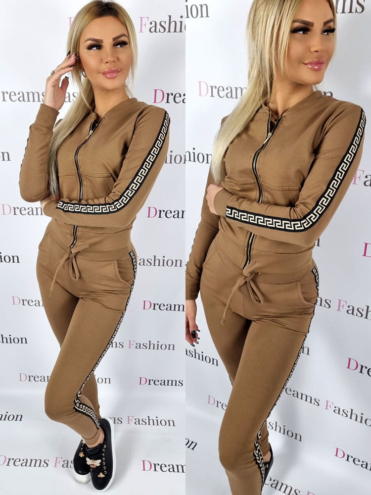 Komplet bluza + spodnie karmel lampas grecki K157