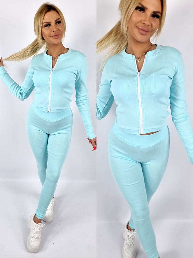 Komplet prążek bluza na zamek + legginsy lazurowy K170