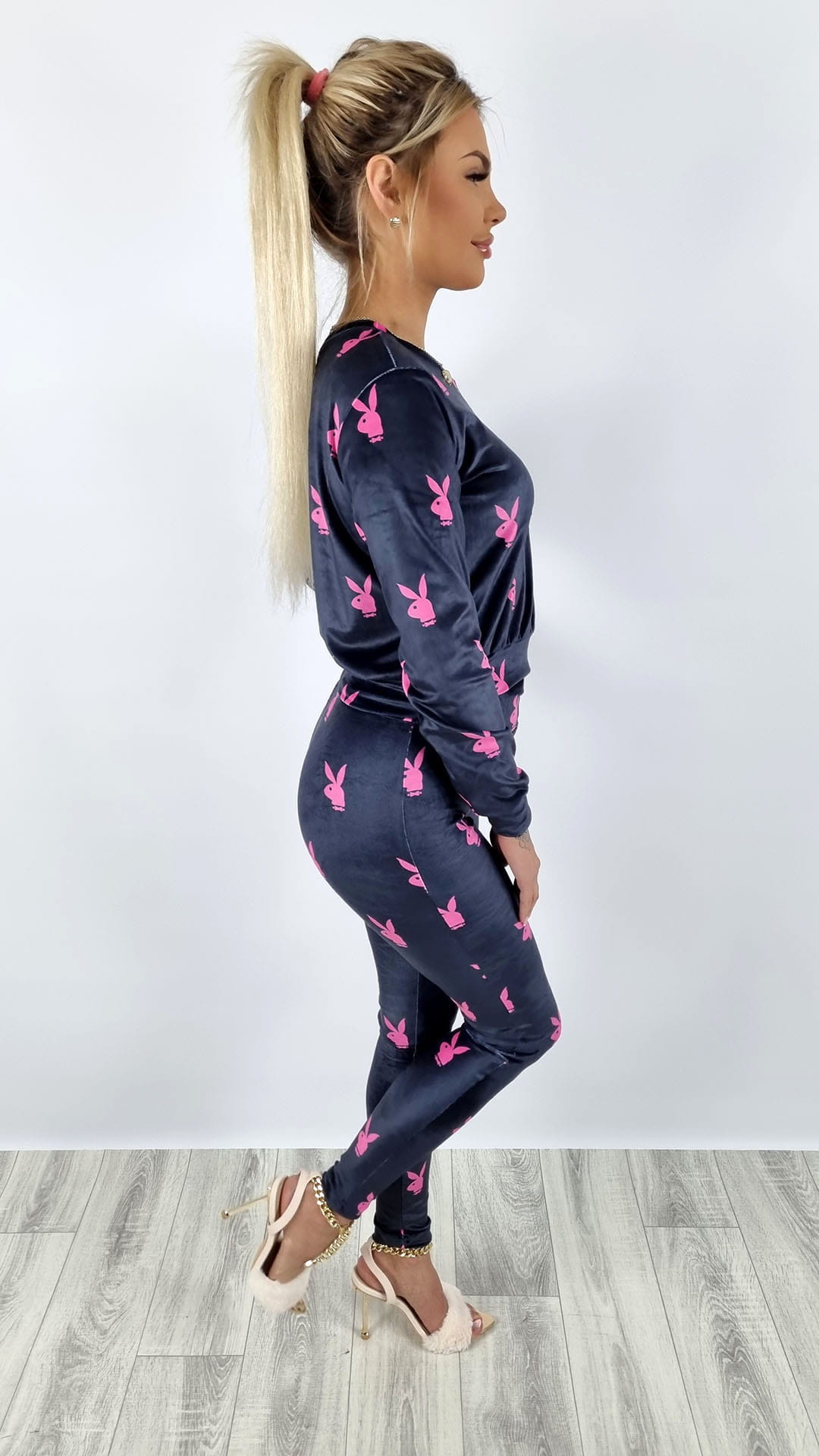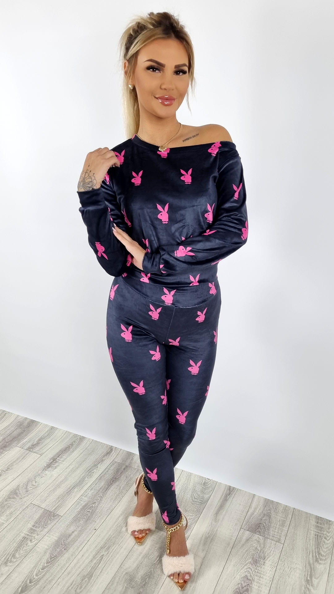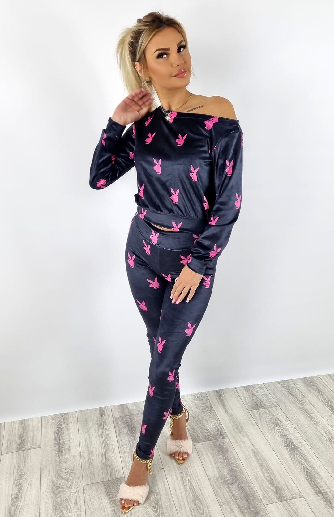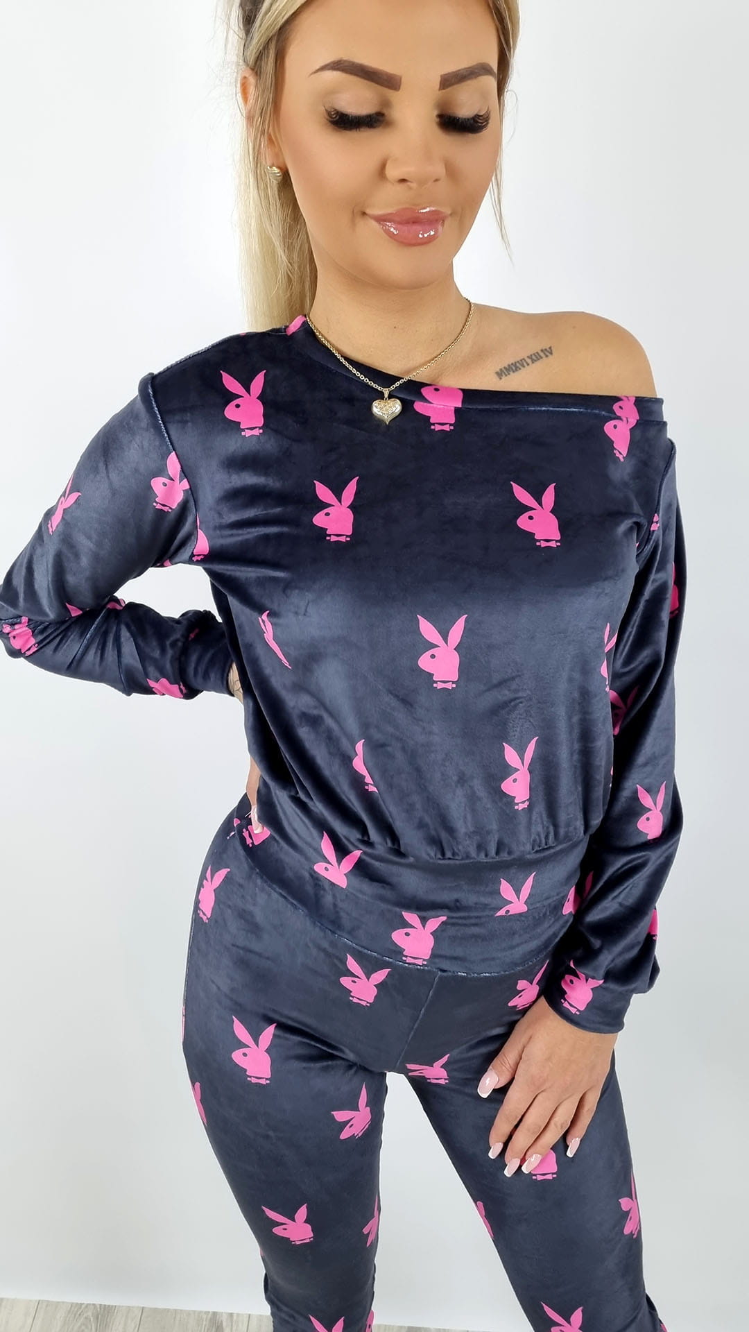 Komplet welurowy bluza + legginsy króliczki czarny K142