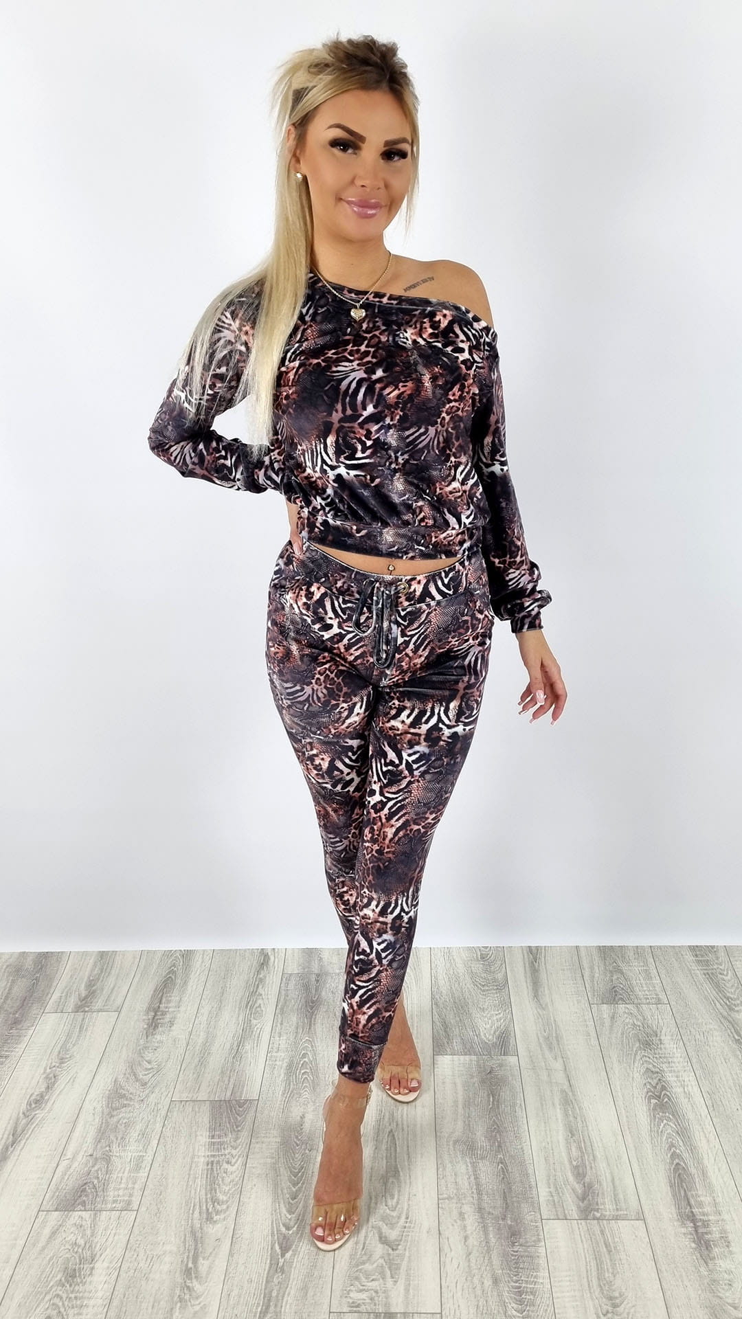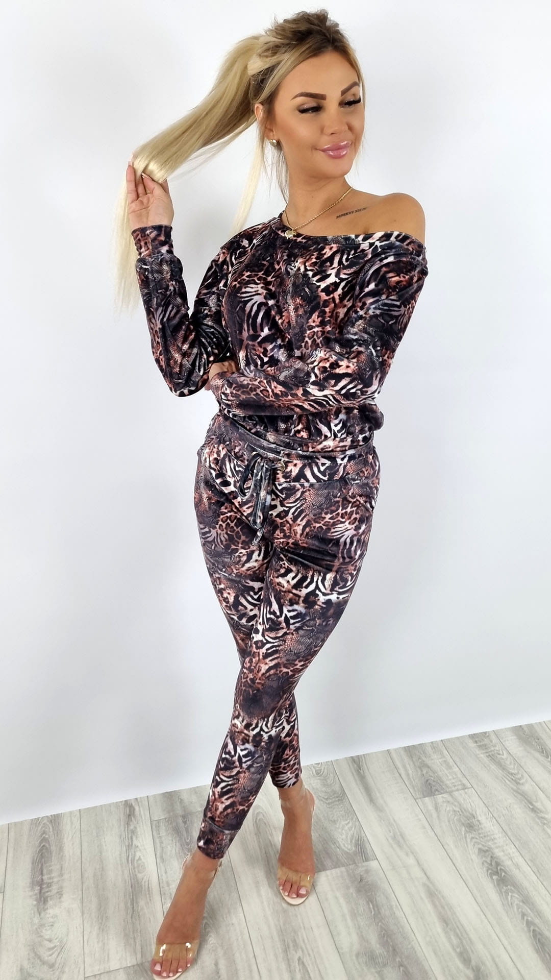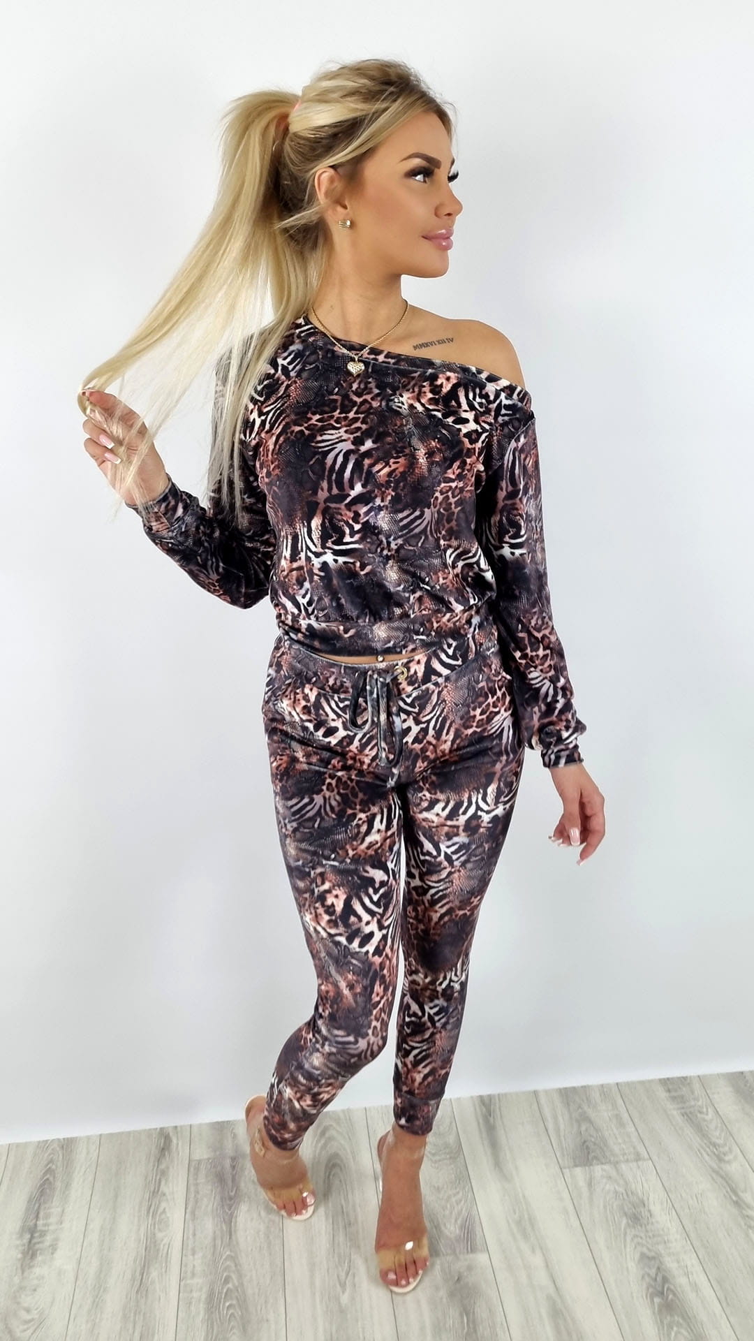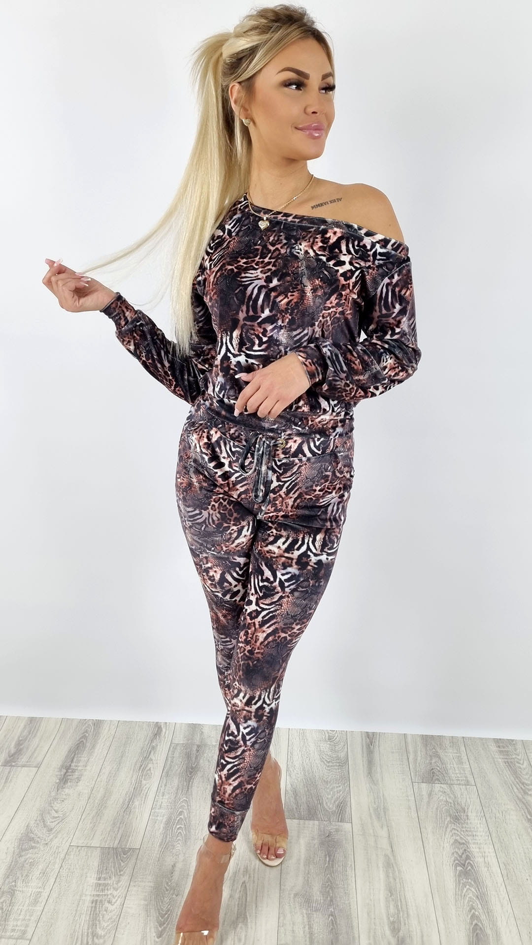 Komplet welurowy bluza na ramię + spodnie wzór K129