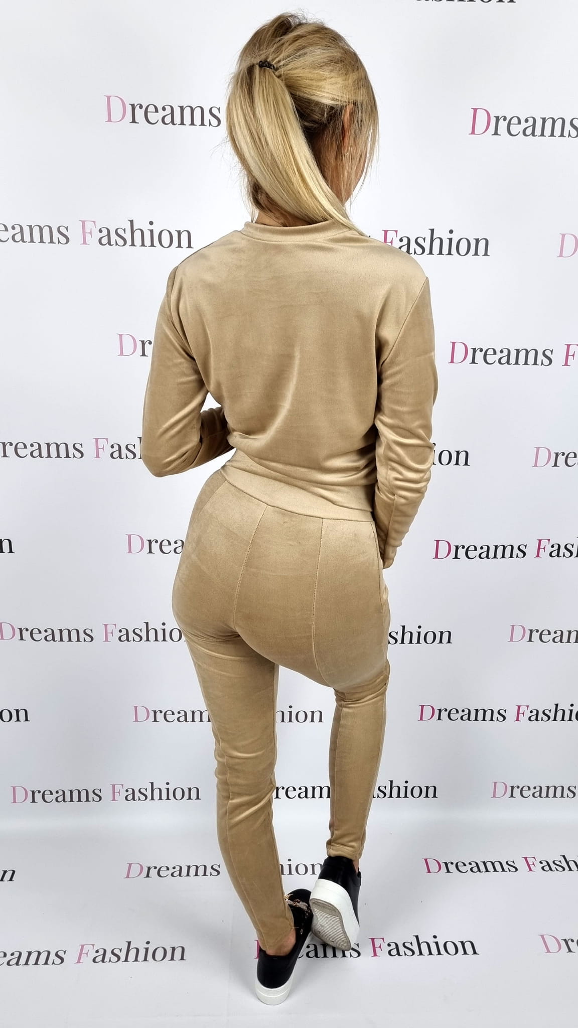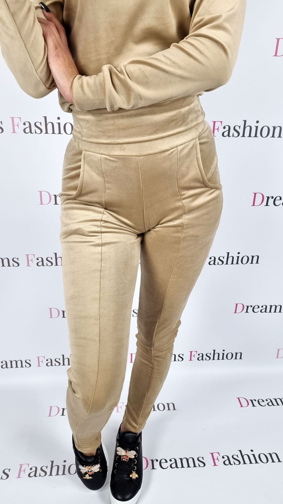 Komplet welurowy bluza + spodnie beżowy K153