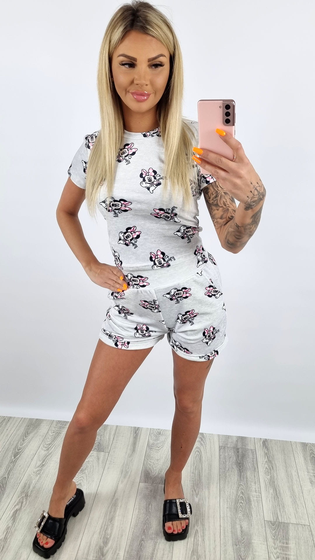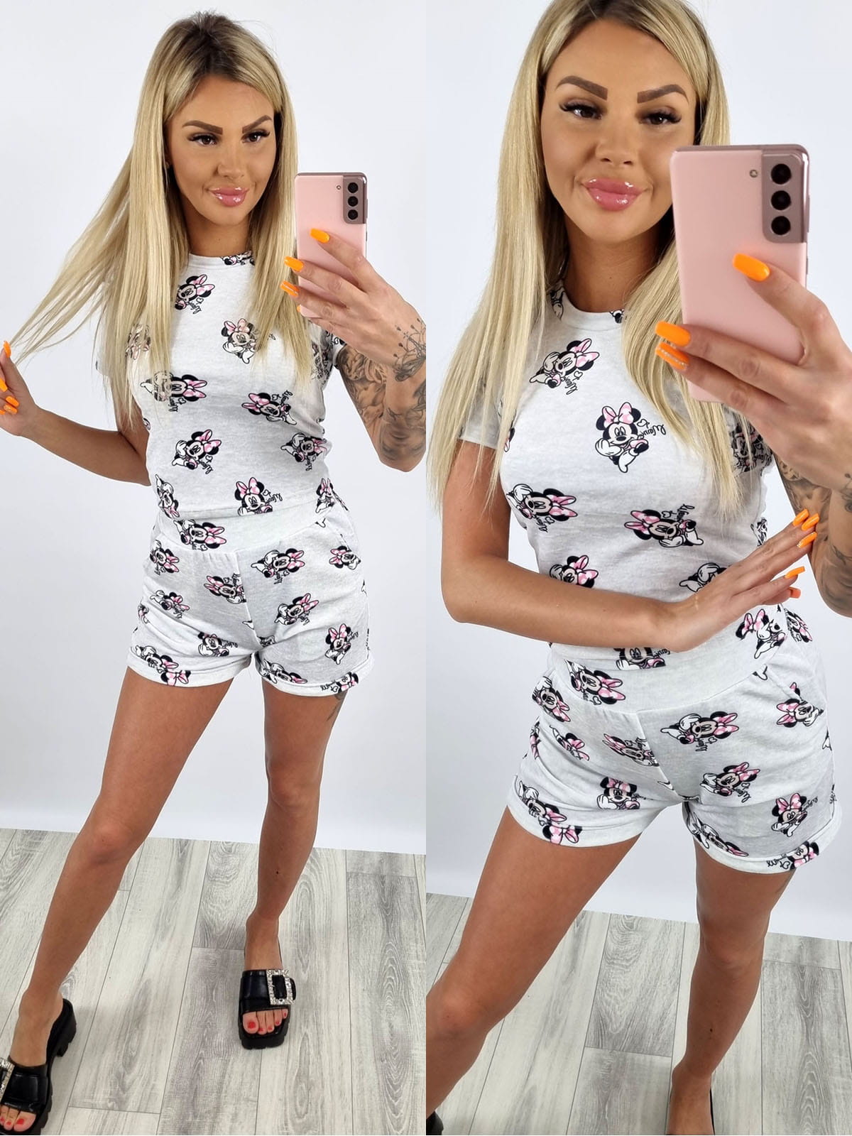 Komplet welurowy t-shirt + spodenki Minnie j.szary K104